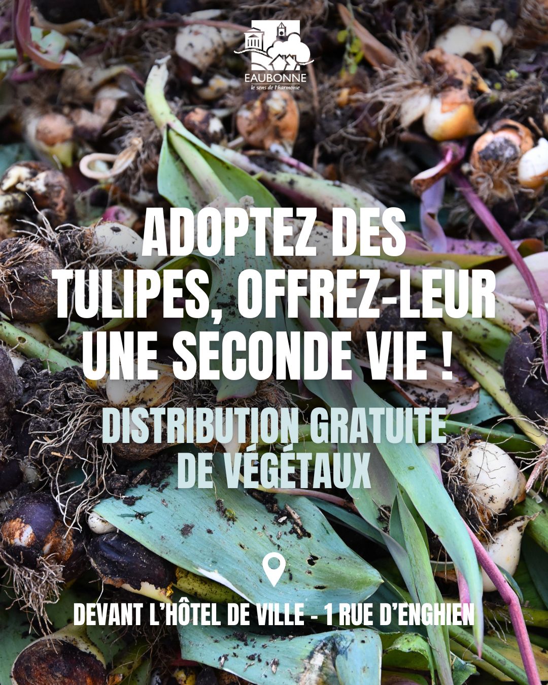 Dans le cadre de son engagement pour une ville plus verte, plus durable et attentive à la démarche anti-gaspillage, la Ville met à votre disposition des végétaux issus du fleurissement annuel, ici des tulipes, à retrouver toute la semaine, dans des bacs installés sur le parvis de l’Hôtel de Ville.