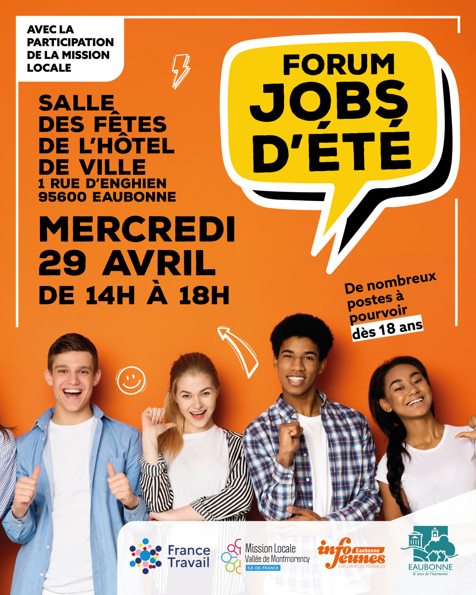 Pour préparer la période estivale, la Ville d’Eaubonne organise, en partenariat avec la Mission Locale de la Vallée de Montmorency, un Forum Jobs d’été.
